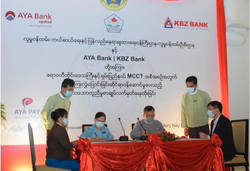 လူမှုဝန်ထမ်း၊ ကယ်ဆယ်ရေးနှင့် ပြန်လည်နေရာချထားရေး၀န်ကြီးဌာန လူမှုဝန်ထမ်းဦးစီးဌာနမှ ဆောင်ရွက်လျက်ရှိသည့် ကိုယ်ဝန်ဆောင်မိခင်များနှင့် ၎င်းတို့မှမွေးဖွားလာသော အသက်(၂)နှစ်အောက် ကလေးသူငယ်များအား ငွေကြေးထောက်ပံ့သည့် အစီအစဉ် (Maternal and Child Cash Transfer Program – MCCT) အား ဧရာဝတီတိုင်းဒေသကြီးနှင့် ရှမ်းပြည်နယ်တွင် ၂၀၂၀ ပြည့်နှစ်၊ စက်တင်ဘာလမှစတင်၍ ထောက်ပံ့နိုင်ရန်အတွက် ငွေကြေးလွှဲပြောင်းခြင်းဆိုင်ရာ ဝန်ဆောင်မှုပေးသည့် သဘောတူစာချုပ်လက်မှတ်ရေးထိုးခြင်း အခမ်းအနားကို ယနေ့နံနက်ပိုင်းတွင် နေပြည်တော်ရှိ M Gallery ဟိုတယ်တွင် ကျင်းပသည်။