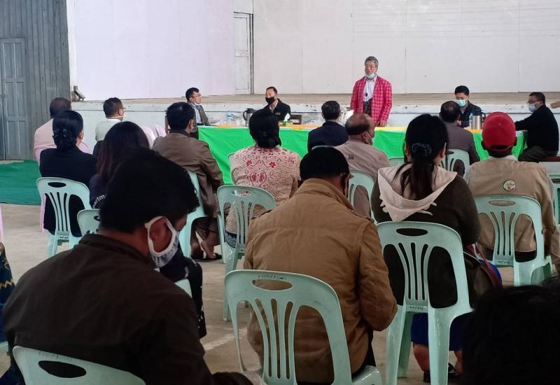 နာဂကိုယ်ပိုင်အုပ်ချုပ်ခွင့်ရဒေသ လဟယ်မြို့တွင် ကိုရိုနာဗိုင်းရပ်စ် (COVID-19) ကူးစက်ရောဂါ ကာကွယ်ထိန်းချုပ်ကုသရေး လုပ်ငန်းညှိနှိုင်း အစည်းဝေးကို ယမန်နေ့ က နာဂဒေသဦးစီးအဖွဲ့ရုံးအစည်း ဝေးခန်းမ၌ ကျင်းပသည်။