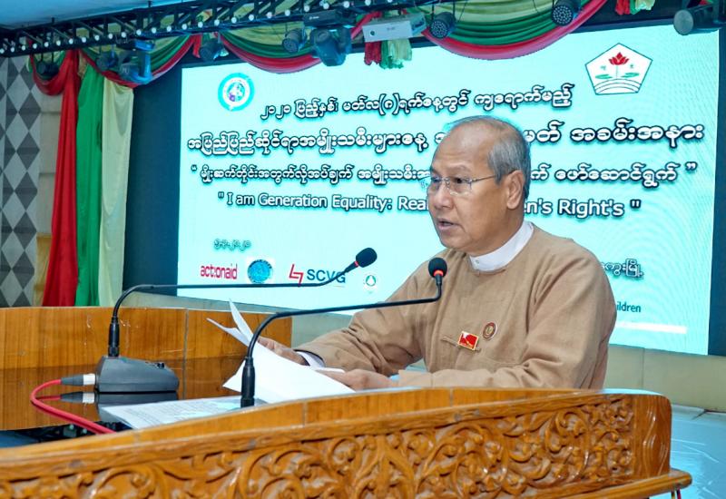 ၂၀၂၀ ပြည့်နှစ် အပြည်ပြည်ဆိုင်ရာ အမျိုးသမီးများနေ့ ဦးတည်ချက်ဆောင်ပုဒ်မှာ မျိုးဆက်တိုင်း အတွက်လိုအပ်ချက် အမျိုးသမီးအခွင့်အရေးသိလျက်ဖော်ဆောင်ရွက် “ I am Generation Equality; Realizing Women’s Rights ” ဖြစ်ပြီး အပြည်ပြည်ဆိုင်ရာ အမျိုးသမီးများနေ့ အထိမ်းအမှတ် အခမ်းအနားကို ယနေ့နံနက် ၉ နာရီက မကွေးမြို့ မြို့တော်ခန်းမ၌ ကျင်းပပြုလုပ်ရာ မကွေးတိုင်း ဒေသကြီး ဝန်ကြီးချုပ် ဒေါက်တာအောင်မိုးညို တက်ရောက်အမှာ စကားပြောကြားသည်။