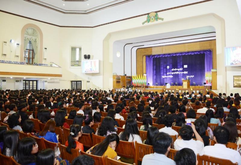 ဗြိတိန်နိုင်ငံ လိုက်ဒန်တက္ကသိုလ်နှင့် မစ်ဒယ်ဆက်စ်တက္ကသိုလ်တို့မှ နိုင်ငံတကာ ဥပဒေပညာရှင် ပါမောက္ခ မစ္စတာ ဝီလျံရှေးဘတ်စ် သည် ယနေ့ နံနက်ပိုင်းက ရန်ကုန်တက္ကသိုလ် ဘွဲ့နှင်းသဘင်ခန်းမ၌ ICJ အတွေ့အကြုံများနှင့် နိုင်ငံတကာ ဥပဒေဆိုင်ရာများကို ဟောပြောသည်။
