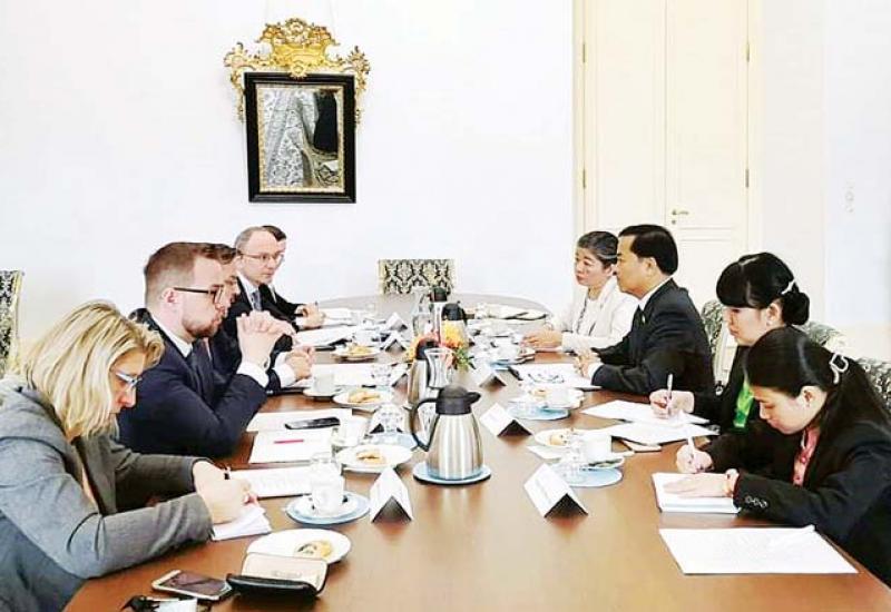 ဒုတိယအကြိမ် မြန်မာ-ချက် နှစ်နိုင်ငံ နိုင်ငံခြားရေးဝန်ကြီးဌာနများအကြား ဆွေးနွေးပွဲကို ယမန်နေ့ နံနက်ပိုင်းက ချက်သမ္မတနိုင်ငံ ပရာ့ဂ်မြို့ရှိ ချက်နိုင်ငံခြားရေး ဝန်ကြီးဌာန၌ ကျင်းပသည်။