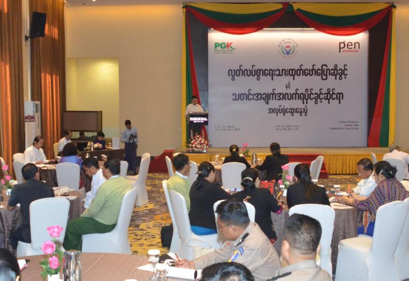 မြန်မာနိုင်ငံ အမျိုးသားလူ့အခွင့်အရေးကော်မရှင်၊ Pen Myanmar အဖွဲ့နှင့် ပြည်ကြီးခင်အဖွဲ့တို့ ပူးပေါင်းကျင်းပသည့် လွတ်လပ်စွာရေးသားထုတ်ဖော် ပြောဆိုခွင့်နှင့် သတင်းအချက်အလက် ရပိုင်ခွင့်ဆိုင်ရာ အလုပ်ရုံဆွေးနွေးပွဲကို ယနေ့နံနက် ၉ နာရီတွင် နေပြည်တော်ရှိ Park Royal ဟိုတယ်၌ ကျင်းပသည်။
