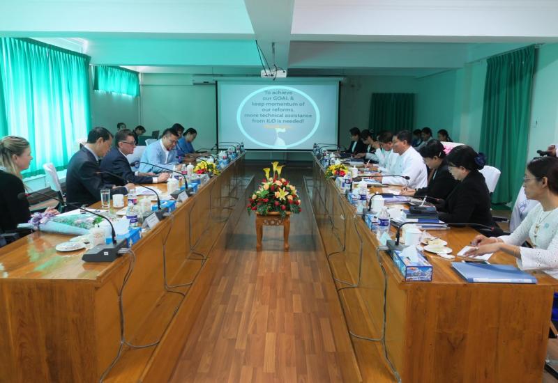 အလုပ်သမား၊ လူဝင်မှုကြီးကြပ်ရေးနှင့် ပြည်သူ့အင်အားဝန်ကြီးဌာန လူမှုဖူလုံရေးအဖွဲ့ မှဆောင်ရွက်လျက်ရှိသည့် ပြုပြင်ပြောင်းလဲရေးလုပ်ငန်းများတွင် အပြည်ပြည်ဆိုင်ရာ အလုပ် သမားရေးရာအဖွဲ့ (ILO)မှ နည်းပညာအကူအညီပေးနေမှုများ၊ ဆက်လက်ဆောင်ရွက်မည့် လုပ်ငန်းများနှင့်စပ်လျဉ်း၍ ယနေ့တွင် နေပြည်တော်ရှိ လူမှုဖူလုံရေးရုံးချုပ် အစည်းအဝေးခန်းမ၌ နှစ်ဖက်တာဝန်ရှိသူများက တွေ့ဆုံဆွေးနွေးကြသည်။