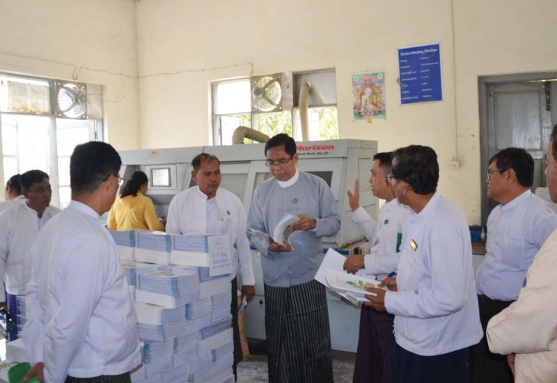 ပြန်ကြားရေးဝန်ကြီးဌာန ဒုတိယဝန်ကြီး ဦးအောင်လှထွန်းသည် ယနေ့ နံနက်ပိုင်းက ၂၀၂၀-၂၀၂၁ ပညာသင်နှစ်အတွက် မန္တလေးတိုင်းဒေသကြီး ပုံနှိပ်နှင့် ထုတ်ဝေသူလုပ်ငန်းရှင်များမှ တင်ဒါလက်ခံရယူ ဆောင်ရွက်နေသည့် ပုံနှိပ်တိုက်များသို့ သွားရောက်၍ ကျောင်းသုံး ပြဋ္ဌာန်းစာအုပ် ရိုက်နှိပ်ပြီးစီးမှု အခြေအနေများ ကို ကြည့်ရှုစစ်ဆေးသည်။