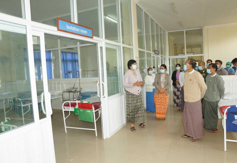နေပြည်တော်ကောင်စီဥက္ကဋ္ဌ ဒေါက်တာမျိုးအောင်၊ နေပြည်တော်ကောင်စီဝင် ဗိုလ်မှူးကြီး မင်းနောင်နှင့် တာဝန်ရှိသူများသည် ယနေ့ နံနက်(၁၀)နာရီတွင် Coronavirus Disease 2019 (COVID-19) လတ်တလော အသက်ရှုလမ်းကြောင်းဆိုင်ရာရောဂါ တွေ့ရှိလာပါက ထိရောက်စွာကုသမှု ပေးနိုင်ရေးအတွက် နေပြည်တော် ခုတင်(၁၀၀၀)ပြည်သူ့ဆေးရုံကြီး၌ သီးခြားဆေး ကုသဆောင် ပြင်ဆင်ထားရှိမှုအား သွားရောက်စစ်ဆေးကြ သည်။