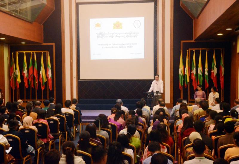 နိုင်ငံတော်အတိုင်ပင်ခံရုံးဝန်ကြီးဌာန၊ အမျိုးသားပြန်လည်သင့်မြတ်ရေးနှင့် ငြိမ်းချမ်းရေးဗဟိုဌာန (NRPC)၊ ကွဲပြားခြားနားမှုနှင့် အမျိုးသားရေး သဟဇာတဖြစ်မှုဆိုင်ရာ လေ့လာရေးအဖွဲ့ (CDNH) တို့ ပူးပေါင်းပြုလုပ်သည့် ရခိုင်ပြည်နယ်အတွင်း လူမှုသဟဇာတ ဖြစ်စေရေး ဦးတည်သော အမျိုးသမီးများ တွေ့ဆုံဆွေးနွေးပွဲ ဖွင့်ပွဲအခမ်းအနားကို ယနေ့နံနက် ၉ နာရီခွဲက ရန်ကုန်မြို့၊ ရွှေလီလမ်းရှိ အမျိုးသားပြန်လည်သင့်မြတ်ရေးနှင့် ငြိမ်းချမ်းရေး ဗဟိုဌာန(NRPC) ရန်ကုန်ရုံး၌ ကျင်းပသည်။