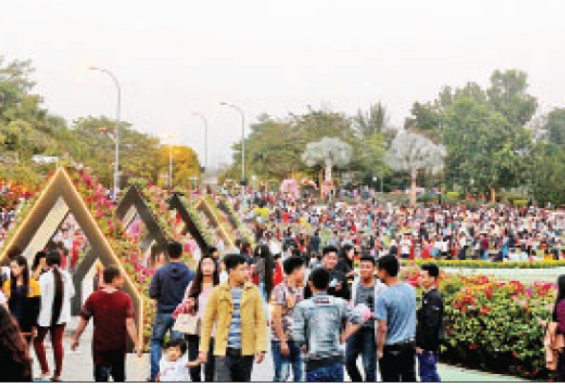 နေပြည်တော် ရေပန်းဥယျာဉ်အတွင်း ဖေဖော်ဝါရီ ၁၄ ရက်မှ စတင်ကာ ကျင်းပလျက်ရှိသည့် ပန်းပွဲတော်သို့ အများပြည်သူ ရုံးပိတ်ရက်ဖြစ်သော ယနေ့တွင် အနယ်နယ်အရပ်ရပ်မှ လာရောက် လည်ပတ်သူများသည် ပန်းပွဲတော်တွင် စိုက်ပျိုးထားသည့် ပန်းများနှင့် ဖန်တီးပုံဖော်ပြသထားသည့် ပန်းပေါင်းစုံအလှကို ခံစားအပန်းဖြေရင်း အထူးစည်ကား လျက်ရှိသည်။