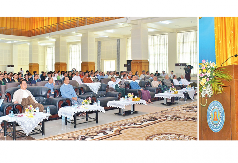 သာသနာရေးနှင့် ယဉ်ကျေးမှုဝန်ကြီးဌာန သမိုင်းသုတေသနနှင့် အမျိုးသား စာကြည့်တိုက် ဦးစီးဌာနက ကြီးမှူး ကျင်းပသော “မြန်မာ့အစဉ်အလာ ဓလေ့ကို ရှာဖွေဖော်ထုတ်ခြင်း” သုတေသန စာတမ်းဖတ်ပွဲ ဖွင့်ပွဲ အခမ်းအနားကို ယနေ့နံနက် ၉ နာရီတွင် အမျိုးသားစာကြည့်တိုက် (နေပြည်တော်)ရှိ ဝန်ဇင်းမင်းရာဇာ ခန်းမ၌ ကျင်းပသည်။