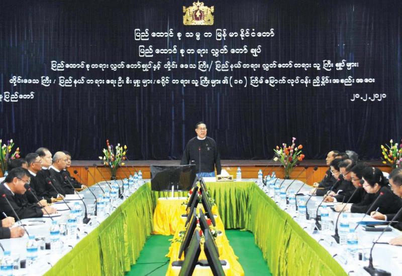ပြည်ထောင်စုတရားလွှတ်တော်ချုပ်နှင့် တိုင်းဒေသကြီး/ ပြည်နယ်တရားလွှတ်တော်များ၊ ခရိုင်တရားရုံးများ၏ (၁၈) ကြိမ်မြောက် လုပ်ငန်းညှိနှိုင်းအစည်းအဝေးကို ယနေ့ နံနက် ၉ နာရီတွင် နေပြည်တော်ရှိ ပြည်ထောင်စုတရား လွှတ်တော်ချုပ် အစည်းအဝေးခန်းမ၌ ကျင်းပရာ ပြည်ထောင်စုတရားသူကြီးချုပ် ဦးထွန်းထွန်းဦး တက်ရောက်၍ အဖွင့်အမှာစကားပြောကြားသည်။