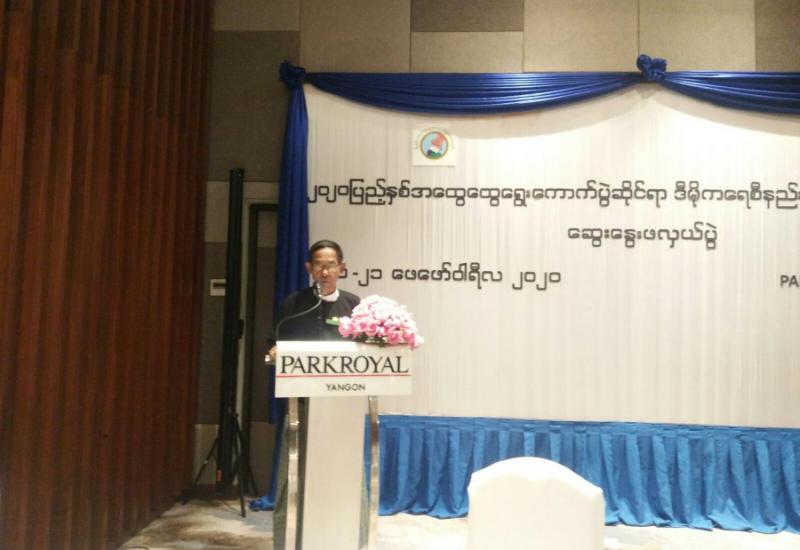 ရန်ကုန်တိုင်းဒေသကြီး ရွေးကောက်ပွဲကော်မရှင်အဖွဲ့ခွဲနှင့် အမေရိကန်ငြိမ်းချမ်းရေး အင်စတီကျူ့ (United States Institute of Peace, USIP) တို့ ပူးပေါင်းကျင်းပသော ၂၀၂၀ ပြည့်နှစ် အထွေထွေရွေးကောက်ပွဲဆိုင်ရာ ဒီမိုကရေစီနည်းကျ စီမံထိန်းကျောင်းခြင်း ဆွေးနွေးဖလှယ်ပွဲအား ယနေ့နံနက် ၉ နာရီခွဲတွင် ရန်ကုန်တိုင်း ဒေသကြီး၊ ဒဂုံမြို့နယ်၊ Park Royal Hotel ၌ ကျင်းပသည်။