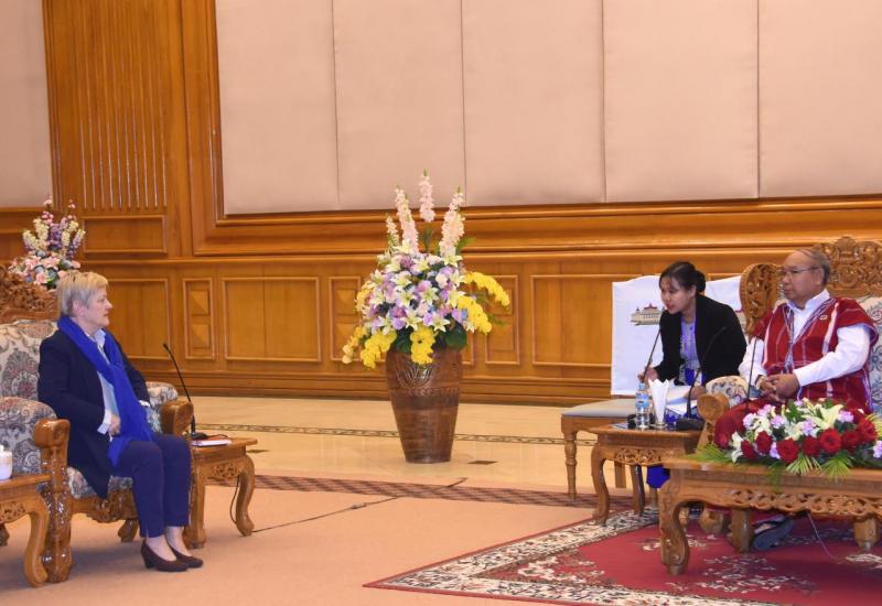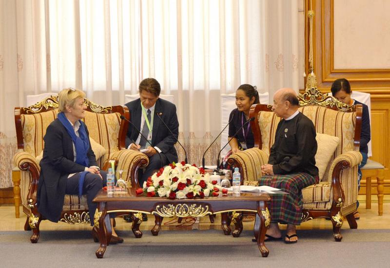 အမျိုးသားလွှတ်တော်ဥက္ကဋ္ဌ မန်းဝင်းခိုင်သန်းသည် ဂျာမန်လွှတ်တော်မှ အာဆီယံပါလီမန်များ၏ဥက္ကဋ္ဌ Mrs. Renate Kunast နှင့်အဖွဲ့အား ယနေ့ နံနက် ၉ နာရီတွင် နေပြည်တော်ရှိ အမျိုးသားလွှတ်တော် ဧည့်ခန်းမဆောင်၌ လက်ခံတွေ့ဆုံသည်။