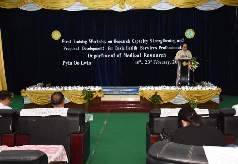 ကျန်းမာရေးမှူးများအတွက် ကျန်းမာရေးနှင့်အားကစားဝန်ကြီးဌာန၏ ပထမဆုံးအကြိမ် သုတေသန နည်းပညာအထူးသင်တန်း (၂၀၂၀) (First training workshop on research capacity strengthening and proposal development for basic health services professionals) သင်တန်းဖွင့်ပွဲအခမ်းအနားကို ယမန်နေ့ နံနက်ပိုင်းတွင် ဆေးသုတေသနဦးစီး ဌာန (ပြင်ဦးလွင်)ရှိ သုတေသနစွမ်းဆောင်ရည်လေ့ကျင့်မြှင့်တင်ရေး ဗဟိုဌာနတွင် ကျင်းပသည်။