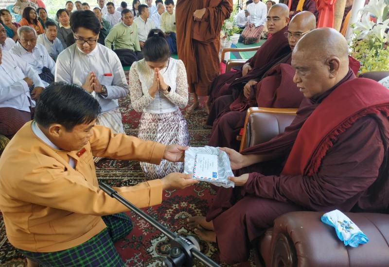 ပဲခူးတိုင်းဒေသကြီးဝန်ကြီးချုပ်နှင့် အစိုးရအဖွဲ့တာဝန်ရှိသူများသည် ယနေ့ နံနက်(၈)နာရီအချိန်က ပဲခူးမြို့နယ် စစ်ပင်ဆိပ်ကျေးရွာရှိ ဒိုးတန်းသာသနာ့နယ်မြေ ကုန်းတော်ပေါ်တွင် တည်ထားကိုးကွယ်သည့် အကျွတ်အလွတ် သိဒ္ဓိရှင်မြတ်စွာ ဘုရားရုပ်ပွားတော်အား ဗုဒ္ဓါဘိသေကအနေကဇာတင်နှင့် ရေစက်ချအလှူတော်မင်္ဂလာ အခမ်းအနားသို့ တက်ရောက်ကုသိုလ်ယူခဲ့ကြသည်။