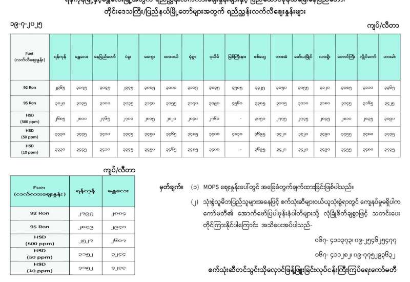 ရန်ကုန်မြို့နှင့် မန္တလေးမြို့အတွက် ရည်ညွှန်းလက်ကားဈေးနှုန်းများနှင့် ပြည်ထောင်စုနယ်မြေ နေပြည်တော်၊ တိုင်းဒေသကြီး/ပြည်နယ် မြို့တော်များအတွက် ရည်ညွှန်းလက်လီဈေးနှုန်းများ