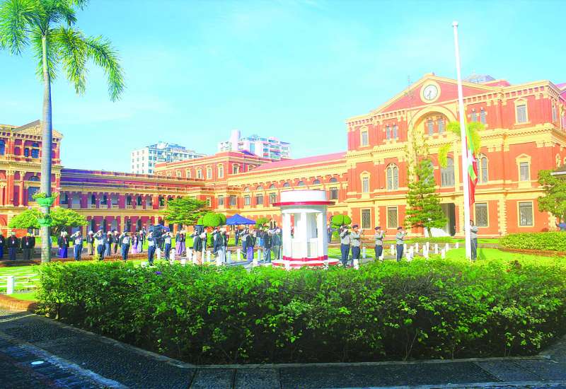 (၇၈) နှစ်မြောက် အာဇာနည်နေ့တွင် ဝမ်းနည်းခြင်းအထိမ်းအမှတ် နိုင်ငံတော်အလံအား တိုင်ဝက်လျှော့ချလွှင့်ထူ၍ အလေးပြုခြင်းအခမ်းအနားကို ယနေ့နံနက် ၇ နာရီခွဲက ဗိုလ်ချုပ်အောင်ဆန်းနှင့်တကွ အာဇာနည်ခေါင်းဆောင်ကြီးများကျဆုံးခဲ့ရာ ရန်ကုန်မြို့ဗိုလ်တထောင်မြို့နယ် သိမ်ဖြူလမ်းရှိ ဝန်ကြီးများရုံး(ယခင်အတွင်းဝန်ရုံး)၌ ကျင်းပသည်။
