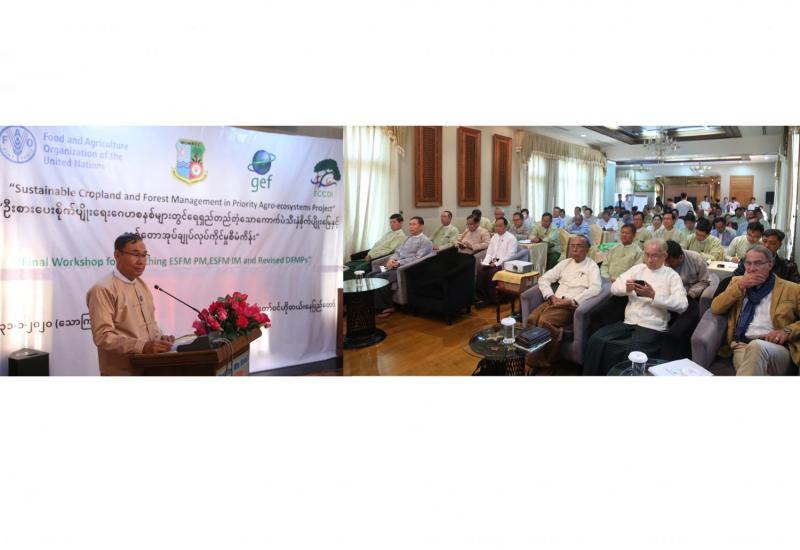 ဂေဟစနစ်အခြေခံသည့် သစ်တောများရေရှည်တည်တံ့ရေးအုပ်ချုပ်လုပ်ကိုင်မှု စီမံကိန်းရေးဆွဲခြင်း လက်စွဲ၊ အကောင်အထည်ဖော်ခြင်းလက်စွဲနှင့် နမူနာခရိုင်အုပ်ချုပ်လုပ်ကိုင်မှုစီမံကိန်းများအား ရှင်းလင်းတင်ပြခြင်း အလုပ်ရုံ ဆွေးနွေးပွဲကို ယနေ့ နံနက် ၉ နာရီတွင် နေပြည်တော်ရှိ မြတ်တော်ဝင်ဟိုတယ်၌ ကျင်းပသည်။
