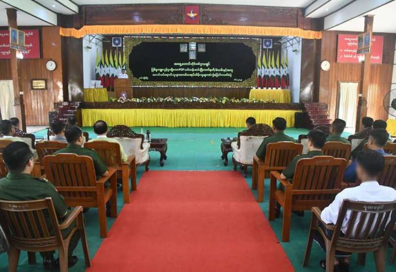 တိုင်းရင်းသားလက်နက်ကိုင်အဖွဲ့နယ်မြေများအတွင်း သင်တန်းများ တက်ရောက်ခဲ့ပြီး ပြစ်မှုကျူးလွန်ခြင်းမရှိခဲ့သည့် ဥပဒေဘောင်အတွင်း ဝင်ရောက်လာသော PDF အမည်ခံအဖွဲ့ဝင်များကို ပြန်လည်ကြိုဆိုလက်ခံ၍ မိဘအုပ်ထိန်းသူများထံ လွှဲပြောင်းပေးအပ်ခြင်းကို ယနေ့မွန်းလွဲပိုင်းတွင် အရှေ့တောင်တိုင်းစစ်ဌာနချုပ်၊ အောင်ဆန်းခန်းမ၌ ပြုလုပ်ရာ မွန်ပြည်နယ်ဝန်ကြီးချုပ် ဦးအောင်ကြည်သိန်း၊ တိုင်းမှူး ဗိုလ်ချုပ် ကျော်လင်းမောင်နှင့် ဌာနဆိုင်ရာတာဝန်ရှိသူများ၊ ဥပဒေဘောင်အတွင်း ဝင်ရောက်လာသော PDF အဖွဲ့ဝင်များနှင့် ၎င်းတို့၏ မိဘအုပ်ထိန်းသူများ တက်ရောက်ကြသည်။