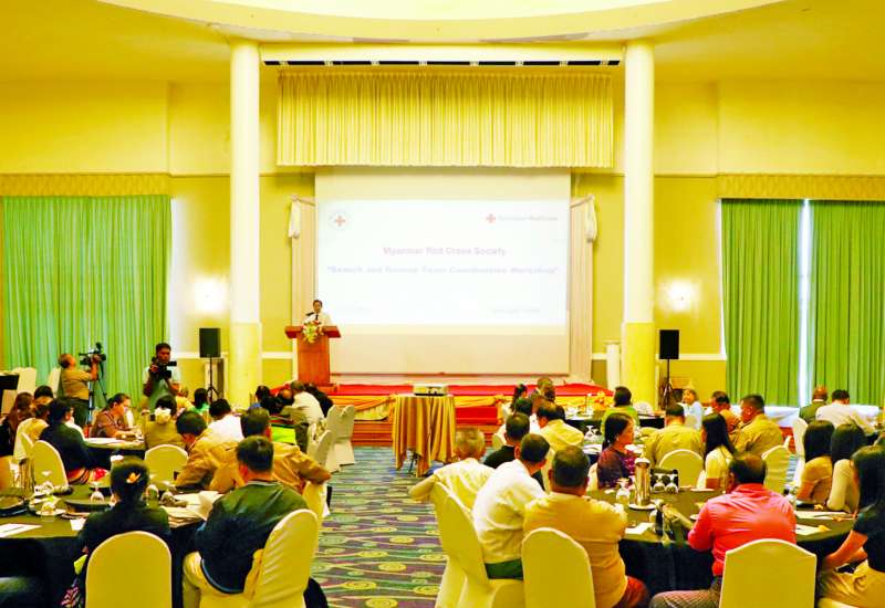 မြန်မာနိုင်ငံကြက်ခြေနီအသင်းနှင့် နော်ဝေနိုင်ငံကြက်ခြေနီအသင်းတို့ ပူးပေါင်းပြုလုပ်သည့် ရှာဖွေရေးနှင့် ကယ်ဆယ်ရေးအဖွဲ့ ဖွဲ့စည်းခြင်းဆိုင်ရာ အလုပ်ရုံဆွေးနွေးပွဲ ဖွင့်ပွဲအခမ်းအနားကို ယနေ့တွင် ရန်ကုန်မြို့ အင်းလျားလိတ်ဟိုတယ်၌ ကျင်းပသည်။