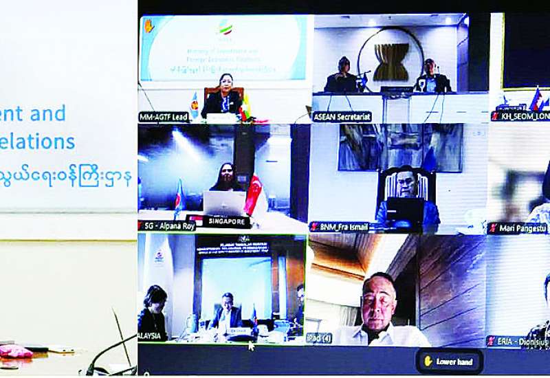 တတိယအကြိမ်မြောက် အာဆီယံပထဝီစီးပွားရေးလုပ်ငန်းအဖွဲ့အစည်းအဝေး (3rd Meeting of ASEAN Geoeconomics Task Force)ကို ယနေ့တွင် ဗီဒီယိုကွန်ဖရင့်စနစ်ဖြင့် ကျင်းပရာ မြန်မာနိုင်ငံ၏ အာဆီယံပထဝီစီးပွားရေးလုပ်ငန်းအဖွဲ့ ခေါင်းဆောင် ရင်းနှီးမြှုပ်နှံမှုနှင့်နိုင်ငံခြားစီးပွားဆက်သွယ်ရေးဝန်ကြီးဌာန ဒုတိယဝန်ကြီး ဒေါက်တာဝါဝါမောင် ဦးဆောင်သည့် ကိုယ်စားလှယ်အဖွဲ့ တက်ရောက်သည်။