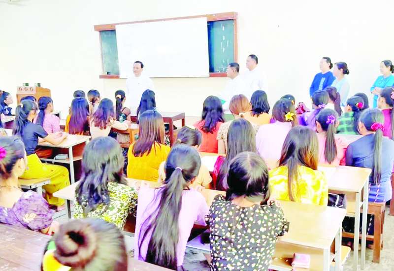 ပညာရေးဝန်ကြီးဌာန ဒုတိယဝန်ကြီး ဒေါက်တာဇော်မြင့်သည် ယနေ့နံနက်ပိုင်းတွင် တောင်ငူပညာရေးဒီဂရီကောလိပ်သို့ ရောက်ရှိ၍ လက်တွေ့တန်းပြဆင်းကြမည့် သင်တန်းသားများအား လမ်းညွှန်ပို့ချနေမှုကို ကြည့်ရှုလေ့လာပြီး သင်တန်းသားများအား မိမိ၏သင်ကြားမှုကို အစဉ်အမြဲတိုးတက်နေစေရေး လေ့လာမြှင့်တင်ကြရန်မှာကြားကာ စာသင်ခန်းများ၌ သင်တန်းသားများ ပညာသင်ယူနေမှုကို ကြည့်ရှုသည်။