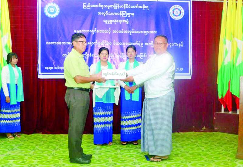 အလုပ်သမားဝန်ကြီးဌာန လူမှုဖူလုံရေးအဖွဲ့မှ ငလျင်ဘေးသင့်အာမခံအလုပ်သမားများအား သဘာဝဘေးအန္တရာယ်ကျရောက်မှုဆိုင်ရာ မိသားစုထောက်ပံ့မှုအကျိုးခံစားခွင့် ၄၀ ရာခိုင်နှုန်း အကျိုးခံစားခွင့်ပေးအပ်ပွဲအခမ်းအနားကို ယနေ့မွန်းလွဲပိုင်းတွင် ရမည်းသင်းမြို့နယ် သင်းရတနာခန်းမ၌ ကျင်းပရာ အလုပ်သမားဝန်ကြီးဌာန အမြဲတမ်းအတွင်းဝန် ဦးအောင်ဌေးဝင်း၊ ခရိုင်စီမံအုပ်ချုပ်ရေးအဖွဲ့ဥက္ကဋ္ဌနှင့် အဖွဲ့ဝင်များ၊ လူမှုဖူလုံရေးအဖွဲ့ ဒုတိယညွှန်ကြားရေးမှူးချုပ်နှင့် အရာထမ်း၊ အမှုထမ်းများ၊ အကျုံးဝင်မှတ်ပုံတင်ထားသော ရမည်းသင်းမြို့နယ်အတွင်းရှိ အလုပ်ရှင်၊ အလုပ်သမားကိုယ်စားလှယ်များ တက်ရောက်ကြသည်။