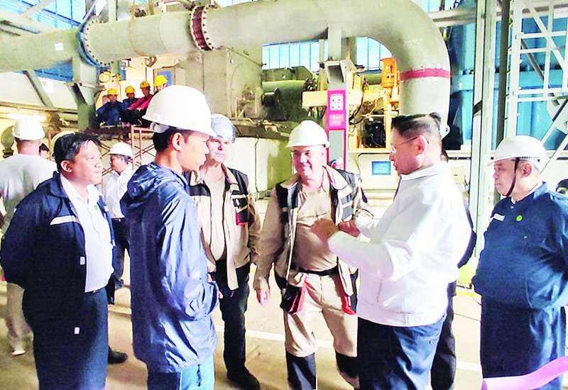 စက်မှုဝန်ကြီးဌာန ဒုတိယဝန်ကြီး ဦးရင်မောင်ညွန့်သည် ဇူလိုင် ၅ ရက်က ရှမ်းပြည်နယ် တောင်ကြီးမြို့ရှိ အမှတ်(၂)သံမဏိစက်ရုံ(ပင်းပက်)၌ လေသန့်စင်အလုပ်ရုံလည်ပတ်နိုင်ရေးအတွက် ပြည်ပကျွမ်းကျင်ပညာရှင်များနှင့် ပူးပေါင်းဆောင်ရွက်နေမှုနှင့် စီမံကိန်းလုပ်ငန်းများ ဘဏ္ဍာရေးနှစ်အလိုက် ဆောင်ရွက်ပြီးစီးမှုအခြေအနေတို့ကို လှည့်လည်ကြည့်ရှုစစ်ဆေးပြီး လက်တွေ့ဆောင်ရွက်နေသည့်လုပ်ငန်းများကို သတ်မှတ်ထားသည့် အချိန်ဇယားအတိုင်း ပြီးစီးအောင်ဆောင်ရွက်ရန် ဆွေးနွေးမှာကြားသည်။
