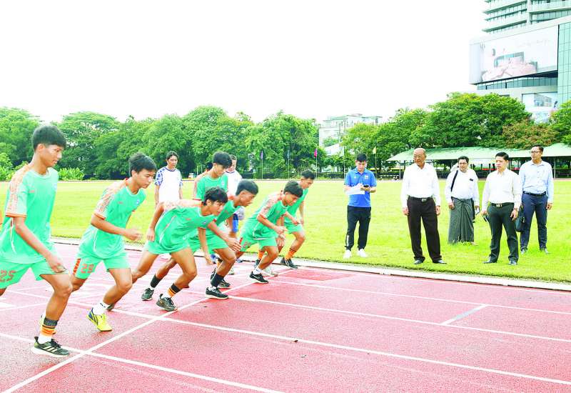 မြန်မာနိုင်ငံ အိုလံပစ်ကော်မတီဥက္ကဋ္ဌ အားကစားနှင့်လူငယ်ရေးရာဝန်ကြီးဌာန ပြည်ထောင်စုဝန်ကြီး Jeng Phang နော်တောင်သည် ယနေ့နံနက် ၈ နာရီတွင် ရန်ကုန်မြို့တာမွေမြို့နယ် ကျိုက္ကဆံကွင်းအတွင်းရှိ ဘောလုံးကွင်းအမှတ်(၁)၌ I.S.P.E FC အမျိုးသားဘောလုံးအသင်းနှင့် I.S.P.E FC အမျိုးသမီးဘောလုံးအသင်း အခြေခံကိုယ်လက်ကြံ့ခိုင်စွမ်းရည်ရှိစေရန် မီတာ ၈၀၀ အပြေး Training လေ့ကျင့်နေမှုကို ကြည့်ရှုစစ်ဆေးသည်။