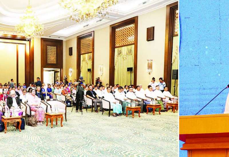 ၂၀၂၅ ခုနှစ် မြန်မာအမျိုးသမီးများနေ့အခမ်းအနားကို ယနေ့နံနက်ပိုင်းတွင် နေပြည်တော်ရှိ ဒက္ခိဏသီရိမြို့နယ် မြန်မာနိုင်ငံအမျိုးသမီးရေးရာအဖွဲ့ချုပ်ရုံး သီရိရတနာခန်းမ၌ ကျင်းပရာ နိုင်ငံတော်စီမံအုပ်ချုပ်ရေးကောင်စီဥက္ကဋ္ဌ နိုင်ငံတော်ဝန်ကြီးချုပ်၏ ဇနီး မြန်မာနိုင်ငံအမျိုးသမီးရေးရာအဖွဲ့ချုပ် ဂုဏ်ထူးဆောင်နာယက ဒေါ်ကြူကြူလှ တက်ရောက်အားပေးသည်။