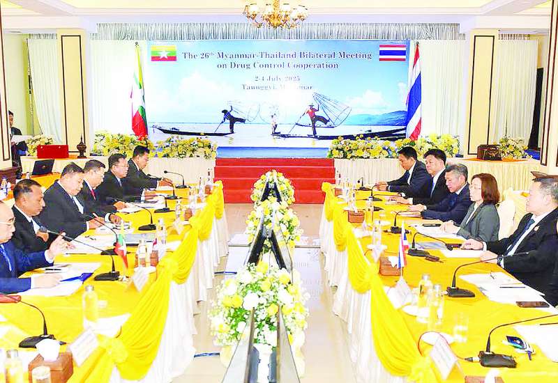 မြန်မာနိုင်ငံက အိမ်ရှင်အဖြစ် လက်ခံကျင်းပသော (၂၆) ကြိမ်မြောက် မြန်မာ-ထိုင်း နှစ်နိုင်ငံ မူးယစ်ဆေးဝါးပူးပေါင်းထိန်းချုပ်ရေးအစည်းအဝေးကို ယနေ့ နံနက် ၈ နာရီတွင် တောင်ကြီးမြို့ တောင်ကြီးဟိုတယ်၌ ကျင်းပသည်။