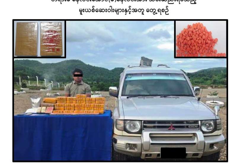 မူးယစ်ဆေးဝါးတားဆီးနှိမ်နင်းရေးရဲတပ်ဖွဲ့မှ တပ်ဖွဲ့ဝင်များပါဝင်သော ပူးပေါင်းအဖွဲ့သည် ဇွန်လ ၂၆ ရက်နေ့ နံနက် ၇ နာရီခွဲအချိန် မန္တလေးတိုင်းဒေသကြီး၊ သာစည်မြို့နယ်၊ ကျွဲတပ်ဆုံကျေးရွာအနီးတွင် ရှမ်းပြည်နယ်(တောင်ပိုင်း)၊ ဆီဆိုင်မြို့နယ်၊ ဆိုက်ခေါင်ကျေးရွာမှ တပ်ကုန်းမြို့နယ်သို့ နေလင်းအောင်(ခ)နေလင်း မောင်းနှင်လာသည့် MITSUBISHI PAJERO အမျိုးအစား မော်တော်ယာဉ်အား စစ်ဆေးရှာဖွေရာ ယာဉ်ပေါ်မှ ဘိန်းဖြူဘလောက်တုံး ၁၀၀ တုံး၊ စုစုပေါင်းအလေးချိန် ၃၅ ကီလို၊ စိတ်ကြွရူးသွပ်ဆေးပြား ၅၂,၀၀၀ ပြားနှင့် ကက်တမင်း ၁ ဒသမ ၁ ကီလိုတို့အား ဖမ်းဆီးရမိခဲ့ပြီး စစ်ဆေးဖော်ထုတ်ချက်အရ ဖမ်းဆီးရမိ မူးယစ်ဆေးဝါးများအား ဆီဆိုင်မြို့နယ်မှ တပ်ကုန်းမြို့နယ်သို့ သယ်ဆောင်လာခြင်းဖြစ်ကြောင်းသိရှိရသဖြင့် ၎င်းအား ဥပဒေအရအရေးယူထားရှိပြီး ကွင်းဆက်ပြစ်မှုကျူးလွန်သူများအား ဆက်လက်ဖော်ထုတ်လျက်ရှိကြောင်း မြန်မာနိုင်ငံရဲတပ်ဖွဲ့မှ သတင်းရရှိသည်။