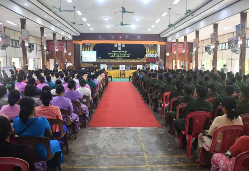 မြန်မာအီလက်ထရောနစ်မဲပေးစက် (MEVM) နှင့်စပ်လျဉ်း၍ ရှင်းလင်းပြသခြင်းနှင့် မဲပေးစက်လက်တွေ့သရုပ်ပြမဲပေးခြင်းကို ယနေ့မွန်းလွဲပိုင်းတွင် အရှေ့တောင်တိုင်းစစ်ဌာနချုပ်၊ အောင်ဆန်းခန်းမ၌ ပြုလုပ်ရာ တိုင်းစစ်ဌာနချုပ်မှ တာဝန်ရှိသူများ မွန်ပြည်နယ်အစိုးရအဖွဲ့ လူမှုရေးရာဝန်ကြီး၊ ပြည်နယ်ရွေးကောက်ပွဲကော်မရှင်အဖွဲ့ခွဲမှ တာဝန်ရှိသူများ၊ တပ်ရင်း/တပ်ဖွဲ့မှူးများ၊ အရာရှိ၊ စစ်သည်၊ မိသားစုဝင်များနှင့် ဆရာ/ ဆရာမများ တက်ရောက်ကြသည်။