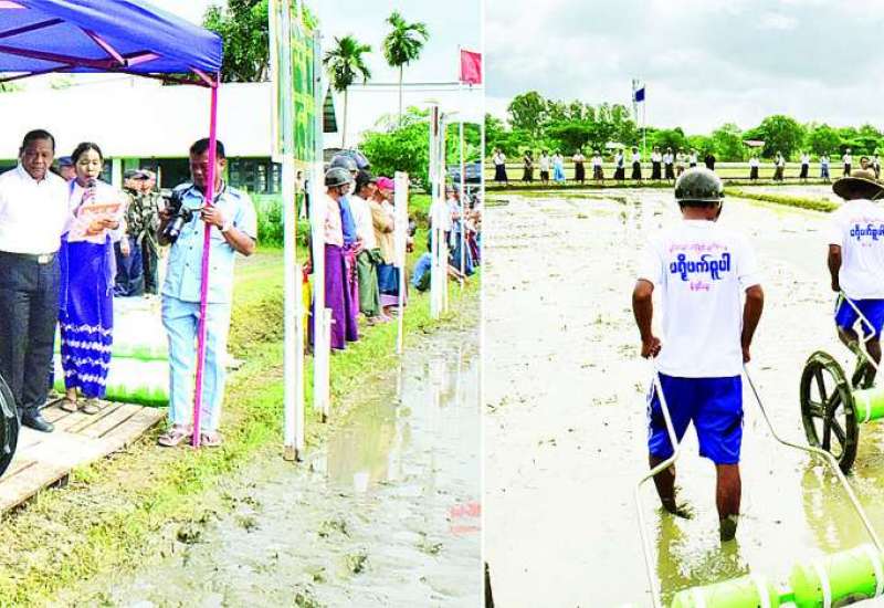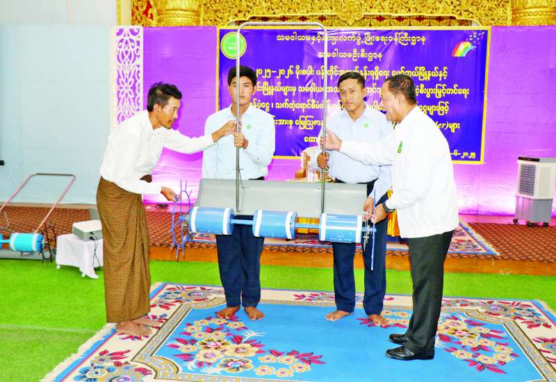 သမဝါယမအသင်းပိုင်ငွေဖြင့် မိုးစပါးစိုက်ပျိုးရေးစီမံကိန်းဆောင်ရွက်မည့် မန္တလေးတိုင်းဒေသကြီး ရမည်းသင်းခရိုင်အတွင်းရှိ ပျော်ဘွယ်မြို့နယ်နှင့် ရမည်းသင်းမြို့နယ်တို့မှ မိုးစပါးစိုက်သမဝါယမ အသင်းသားတောင်သူများသို့ အထွက်တိုးမျိုး၊ သွင်းအားစုနှင့် မျိုးစေ့ချကိရိယာပေးအပ်ပွဲ အခမ်းအနားကို ယနေ့မွန်းလွဲပိုင်းတွင် ပျော်ဘွယ်မြို့နယ် ကထိန်ရာပြည့်သာသနာ့ဗိမာန်တော်၌ ကျင်းပရာ သမဝါယမနှင့်ကျေးလက်ဖွံ့ဖြိုးရေးဝန်ကြီးဌာန ပြည်ထောင်စုဝန်ကြီး ဦးလှမိုး၊ ညွှန်ကြားရေးမှူးချုပ်များ၊ တာဝန်ရှိသူများ တက်ရောက်ကြသည်။