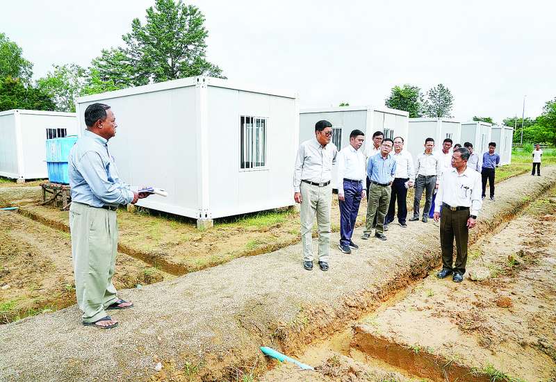 ဟိုတယ်နှင့် ခရီးသွားလာရေး ဝန်ကြီးဌာန ပြည်ထောင်စုဝန်ကြီး ဦးကျော်စိုးဝင်းသည် ဒုတိယဝန်ကြီး ဦးဖြိုးဇော်စိုး၊ တာဝန်ရှိသူများနှင့်အတူ ယနေ့နံနက်ပိုင်းတွင် ဒက္ခိဏသီရိမြို့နယ်အတွင်းရှိ နေပြည်တော် ဟိုတယ်ဆိုင်ရာလုပ်ငန်းရှင်များအသင်း ရုံးဝင်းအတွင်း၌ ဝန်ကြီးဌာနမှ ငလျင်ဘေးသင့်ဝန်ထမ်းများနှင့် မိသားစုဝင်များ ယာယီနေထိုင်နိုင်ရန်အတွက် အမျိုးသားသဘာဝဘေးအန္တရာယ်ဆိုင်ရာ စီမံခန့်ခွဲမှုကော်မတီက ခွဲဝေချထားပေးသည့် အိပ်ခန်းတစ်ခန်းပါ Container House များ တပ်ဆင်တည်ဆောက်ပြီးစီးမှု၊ ဝန်ထမ်းများနှင့် မိသားစုဝင်များအား Container House များသို့ ပြောင်းရွှေ့နေရာချထားပေးနေမှုကို ကြည့်ရှုစစ်ဆေးသည်။