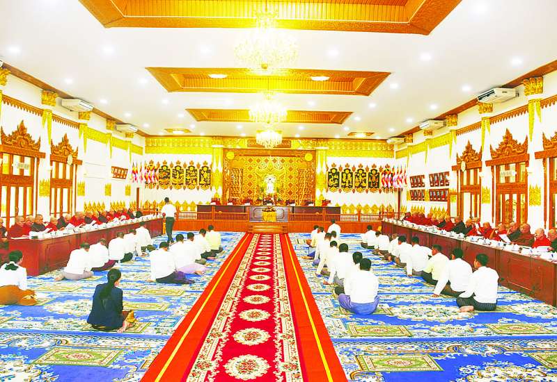 နဝမအကြိမ် နိုင်ငံတော်သံဃမဟာနာယကအဖွဲ့ (၄၇) ပါးစုံညီ ဒုတိယအစည်းအဝေး ဒုတိယနေ့ကို ယနေ့နံနက် ၈ နာရီတွင် ရန်ကုန်မြို့ သီရိမင်္ဂလာကမ္ဘာအေးကုန်းမြေ ဝိဇယမင်္ဂလာဓမ္မသဘင်၌ ဆက်လက်ကျင်းပရာ နိုင်ငံတော်သံဃမဟာနာယကအဖွဲ့ဥက္ကဋ္ဌ သန်လျင်မြို့ မင်းကျောင်းပထမပြန်စာသင်တိုက် ပဓာနနာယကဆရာတော် အဂ္ဂမဟာပဏ္ဍိတ အဂ္ဂမဟာသဒ္ဓမ္မဇောတိကဓဇ ဒေါက်တာဘဒ္ဒန္တစန္ဒိမာဘိဝံသ အမှူးပြုသည့် နိုင်ငံတော်သံဃမဟာနာယကအဖွဲ့ ဆရာတော်ကြီးများ ကြွရောက်တော်မူကြပြီး သာသနာရေးနှင့်ယဉ်ကျေးမှုဝန်ကြီးဌာန ပြည်ထောင်စုဝန်ကြီး ဦးတင်ဦးလွင်နှင့် ဌာနဆိုင်ရာတာဝန်ရှိသူများ၊ တိုင်းဒေသကြီးနှင့် ပြည်နယ်သာသနာရေးမှူးများ တက်ရောက်ကြည်ညိုကြသည်။