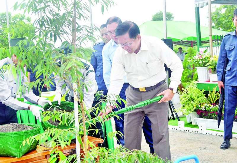 ပြည်ထောင်စုနယ်မြေ၊ နေပြည်တော်၊ ၂၀၂၅ ခုနှစ်၊ ပထမအကြိမ် မိုးရာသီသစ်ပင်စိုက်ပျိုးပွဲအခမ်းအနားကို ယနေ့နံနက်ပိုင်းတွင် ပြည်ထောင်စုနယ်မြေ နေပြည်တော်၊ ဒက္ခိဏသီရိမြို့နယ်၊ ရန်အောင်မြင်ကြိုးဝိုင်း၌ကျင်းပရာ နိုင်ငံတော်စီမံအုပ်ချုပ်ရေးကောင်စီဥက္ကဋ္ဌ နိုင်ငံတော်ဝန်ကြီးချုပ် ဗိုလ်ချုပ်မှူးကြီးမင်းအောင်လှိုင် တက်ရောက်၍ ကံ့ကော်ပျိုးပင်ကို ဦးဆောင်စိုက်ပျိုးပေးသည်။