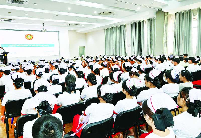 ပြည်သူ့ဆေးရုံများ၏ ပြည်သူ့ဆက်ဆံရေးလုပ်ငန်းဆိုင်ရာ ဆွေးနွေးပွဲကို ဇွန် ၉ ရက်မှ ၁၀ ရက်အထိ မန္တလေးပြည်သူ့ဆေးရုံကြီးရှိ မန်းတောင်ရိပ် (၉) ထပ်ဆောင်အစည်းအဝေးခန်းမ၌ ကျင်းပရာ ကျန်းမာရေးဝန်ကြီးဌာန ကုသရေးဦးစီးဌာန ဒုတိယညွှန်ကြားရေးမှူးချုပ် ဒေါက်တာသံလွင်ထွန်း၊ မန္တလေးပြည်သူ့ဆေးရုံအုပ်ကြီး ဒေါက်တာဆန်းလွင်ဦး၊ ဆေးရုံအုပ်များ၊ မန္တလေးမြို့ရှိ ဗဟိုအဆင့်ဆေးရုံကြီးများမှ သူနာပြုအုပ်ကြီးများ၊ သူနာပြုအုပ်များ၊ အထက်တန်းသူနာပြုများ၊ သူနာပြုများနှင့် တာဝန်ရှိသူများ တက်ရောက်ကြသည်။