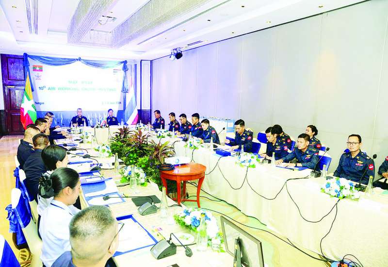 မြန်မာနိုင်ငံက အိမ်ရှင်အဖြစ် လက်ခံကျင်းပသည့် (၁၀) ကြိမ်မြောက် မြန်မာ-ထိုင်း နှစ်နိုင်ငံ လေတပ်ချင်းတွေ့ဆုံဆွေးနွေးပွဲ (10th MAF-RTAF Air Working Group Meeting)ကို ဇွန် ၃ ရက် နံနက်ပိုင်းတွင် ရန်ကုန်မြို့ရှိ Chatrium Hotel ၌ ကျင်းပပြုလုပ်ရာ တပ်မတော် (လေ) မှ စစ်ဦးစီးအရာရှိချုပ် (လေ) ဒုတိယဗိုလ်ချုပ်ကြီး ဇော်ဝင်းမြင့် ဦးဆောင်သော ကိုယ်စားလှယ်အဖွဲ့ဝင်များ၊ ထိုင်းဘုရင့် လေတပ်မှ Air Marshal Anurak Romnarak ဦးဆောင်သော ကိုယ်စားလှယ်အဖွဲ့ဝင်များ၊ မြန်မာနိုင်ငံဆိုင်ရာ ထိုင်းဘုရင့်လေတပ်စစ်သံမှူးနှင့် တာဝန်ရှိသူများ တက်ရောက်ကြသည်။