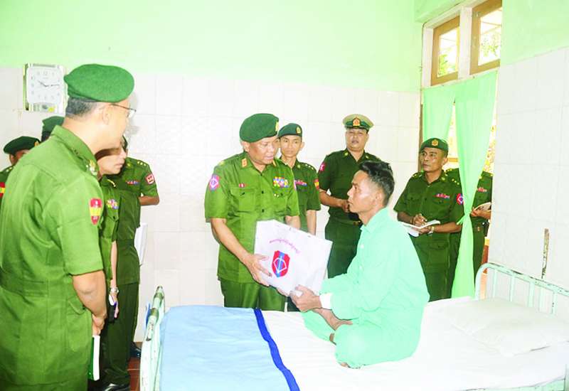 စစ်ကိုင်းတိုင်းဒေသကြီး ခန္တီးမြို့ရှိ တပ်မတော်ဆေးရုံ၌ တက်ရောက်ကုသမှုခံယူလျက်ရှိသော အရာရှိ၊ စစ်သည်၊ မိသားစုဝင်များ၊ မြန်မာနိုင်ငံရဲတပ်ဖွဲ့ဝင်များ၊ စစ်မှုထမ်းဟောင်းအဖွဲ့ဝင်များ၊ ပြည်သူ့စစ် (ဌာနေ)တပ်ဖွဲ့ဝင်များနှင့် ဒေသခံပြည်သူများအား ယနေ့မွန်းလွဲပိုင်းတွင် အနောက်မြောက်တိုင်းစစ်ဌာနချုပ်တိုင်းမှူး ဗိုလ်မှူးချုပ် မျိုးမင်းထွေးနှင့် တာဝန်ရှိသူများက သွားရောက်ကြည့်ရှု၍ တစ်ဦးချင်း၏ ရောဂါဖြစ်ပွားမှု၊ ဆေးဝါးကုသပေးထားမှုနှင့် ကျန်းမာရေးတိုးတက်ကောင်းမွန် မှုအခြေအနေများကို မေးမြန်းအားပေးစကားပြောကြားကာ အာဟာရဖြည့်စားသောက် ဖွယ်ရာများနှင့် ချီးမြှင့်ငွေများ ပေးအပ်သည်။