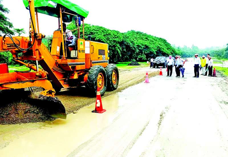 ဆောက်လုပ်ရေးဝန်ကြီးဌာန ဒုတိယဝန်ကြီး ဦးဝင်းဖေသည် ယနေ့နံနက်ပိုင်းတွင် ရန်ကုန်-မန္တလေး အမြန်လမ်းမကြီးပေါ်ရှိ ဆွာချောင်းတံတားနှင့် လမ်းပြင်ဆင်ဆောင်ရွက်နေမှုအခြေအနေကို ကြည့်ရှုစစ်ဆေးသည်။