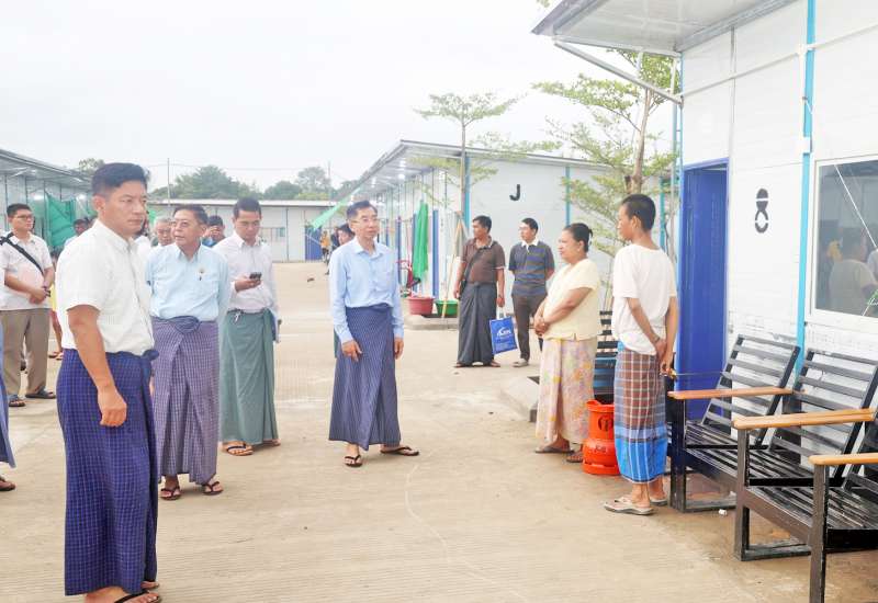 သမဝါယမနှင့်ကျေးလက်ဖွံ့ဖြိုးရေးဝန်ကြီးဌာန ပြည်ထောင်စုဝန်ကြီး ဦးလှမိုးသည် အမြဲတမ်းအတွင်းဝန်၊ ညွှန်ကြားရေးမှူးချုပ်များနှင့်အတူ ယနေ့နံနက်ပိုင်းက ယာယီဘာရှာလိုင်းခန်းများတွင် ဝန်ထမ်းများ ပြောင်းရွှေ့နေထိုင်နေမှုနှင့် Fabricated Modular House များ တပ်ဆင်ဆောင်ရွက်နေမှုကို သွားရောက်ကြည့်ရှုစစ်ဆေးသည်။
