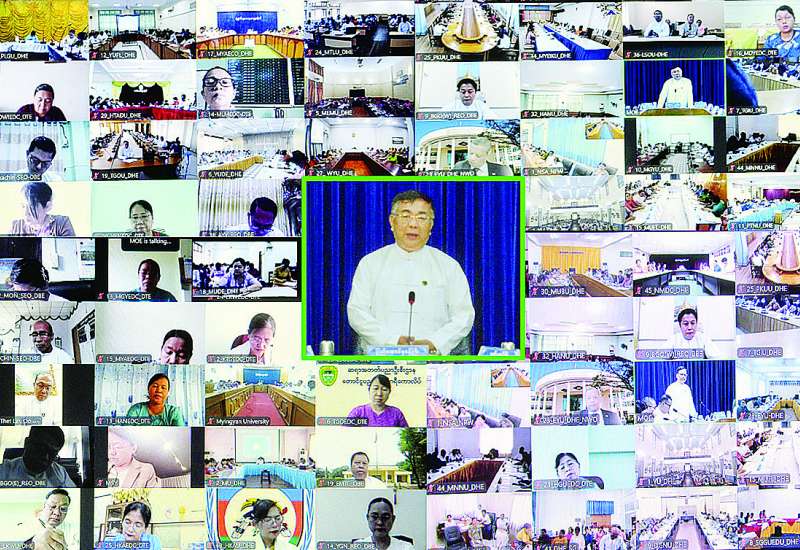 ပညာရေးဝန်ကြီးဌာန ပြည်ထောင်စုဝန်ကြီး ဒေါက်တာညွန့်ဖေသည် ယနေ့နံနက်ပိုင်းတွင် နေပြည်တော်ပညာရေးဝန်ကြီးဌာန ရုံးအမှတ် (၁၃) ရှိ အစည်းအဝေးခန်းမ၌ တက္ကသိုလ်ပါမောက္ခချုပ်များ၊ ပညာရေးဒီဂရီကောလိပ်ကျောင်းအုပ်ကြီးများ၊ တိုင်းဒေသကြီး၊ ပြည်နယ်ပညာရေးမှူးများနှင့် တွေ့ဆုံသည်။