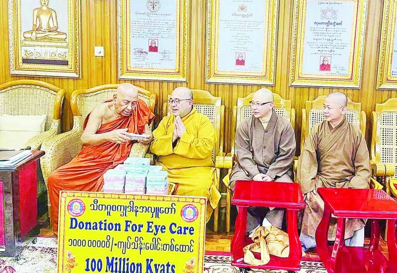 သောဠသမ ရွှေကျင်သာသနာပိုင် အဘိဓဇမဟာရဋ္ဌဂုရု အဘိဓဇအဂ္ဂမဟာသဒ္ဓမ္မ ဇောတိက ဒေါက်တာ အရှင်ဉာဏိဿရ သီတဂူဆရာတော်ကြီးထံသို့ ဩစတေးလျနိုင်ငံနှင့် နယူးဇီလန်နိုင်ငံတို့၌ သာသနာပြုနေသည့် ဆရာတော် VEN. THICH POUOC TAN ဦးဆောင်သော ဗီယက်နမ် ဗုဒ္ဓဘာသာသာသနာပြုအဖွဲ့က စက္ခုဒါနအလှူအဖြစ် ငွေကျပ်သိန်းတစ်ထောင်ကို ယနေ့လာရောက်လှူဒါန်းသည်။