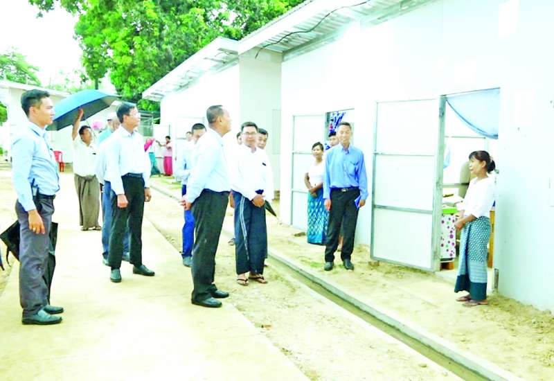 သမဝါယမနှင့်ကျေးလက်ဖွံ့ဖြိုးရေးဝန်ကြီးဌာန ပြည်ထောင်စုဝန်ကြီး ဦးလှမိုးသည် ဒုတိယဝန်ကြီးဦးမြင့်စိုးနှင့်အတူ ယနေ့ညနေပိုင်းက ငလျင်ဒဏ်သင့်ခဲ့သည့် ဝန်ထမ်းများအတွက် တည်ဆောက်ပြီးစီးခဲ့သည့် ယာယီဘာရှာလိုင်းခန်းများ၌ ပြောင်းရွှေ့နေထိုင်မှုများကို ကြည့်ရှုစစ်ဆေးသည်။
