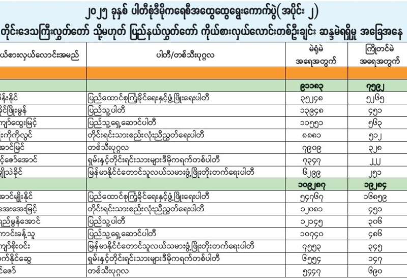 ၂၀၂၅ ခုနှစ် ပါတီစုံဒီမိုကရေစီအထွေထွေရွေးကောက်ပွဲ (အပိုင်း ၂) တိုင်းဒေသကြီးလွှတ်တော် သို့မဟုတ် ပြည်နယ်လွှတ်တော် ကိုယ်စားလှယ်လောင်းတစ်ဦးချင်း ဆန္ဒမဲရရှိမှု အခြေအနေ