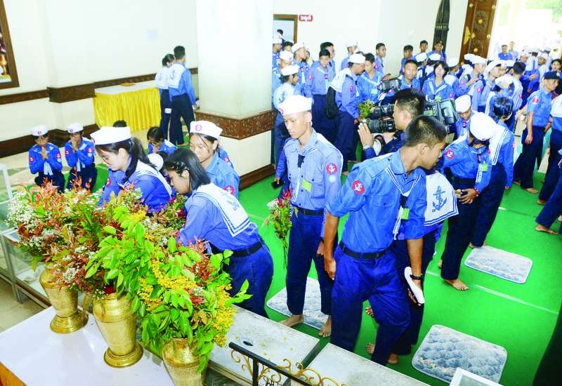 နေပြည်တော်ကောင်စီနယ်မြေသို့ရောက်ရှိနေသော ရေကြောင်းလူငယ်အခြေခံနှင့်တန်းမြင့်သင်တန်း အမှတ်စဉ် (၁/၂၀၂၅) သင်တန်း စခန်း ၁၁ ခုမှ သင်တန်းသား၊ နည်းပြ/အုပ်ချုပ်သူ ၉၂၃ ဦးတို့သည် ယနေ့နံနက်ပိုင်းတွင် သတ္တသတ္တာဟမဟာဗောဓိ စေတီတော်ကြီးနှင့် ဖွား၊ ပွင့်၊ ဟော၊ စံ သံဝေဇနိယလေးဌာနသို့ သွားရောက်လေ့လာဖူးမြော်ကြည်ညိုကြရာ တာဝန်ရှိသူများက လိုက်လံရှင်းလင်းပြသကြသည်။