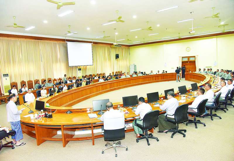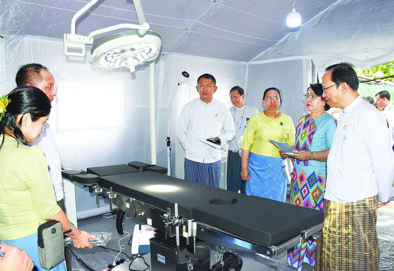 ကျန်းမာရေးဝန်ကြီးဌာန ပြည်ထောင်စုဝန်ကြီး ပါမောက္ခဒေါက်တာ သက်ခိုင်ဝင်းသည် ယနေ့တွင် ရန်ကုန်ပြည်သူ့ဆေးရုံကြီး Training Center ၌ကျင်းပသော (Urban Health Center-UHC) ဒေသန္တရကျန်းမာရေးဌာနများတွင် ကျန်းမာရေးစောင့်ရှောက်မှုလုပ်ငန်းများ တိုးမြှင့်ဆောင်ရွက်နိုင်ရေး လုပ်ငန်းညှိနှိုင်းအစည်းအဝေးသို့ တက်ရောက်အမှာစကားပြောကြားသည်။
