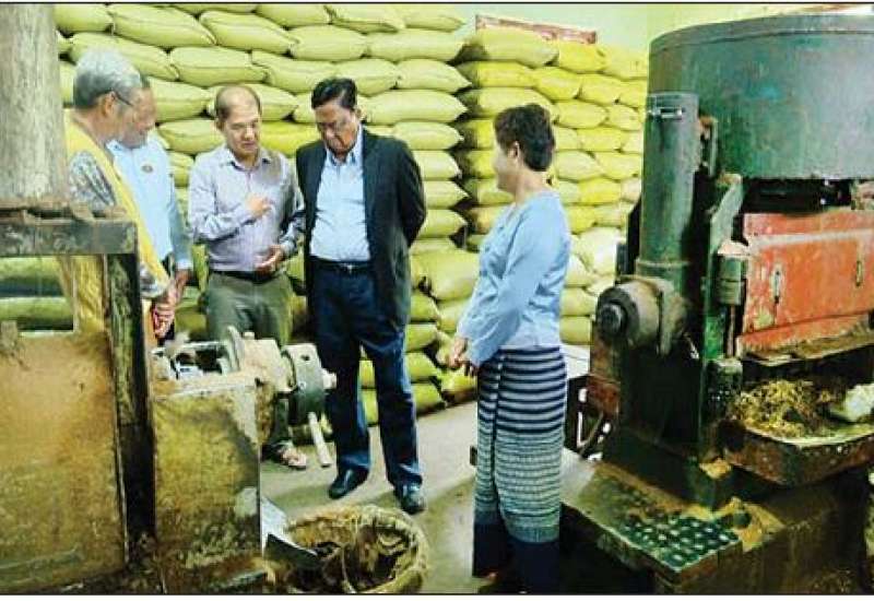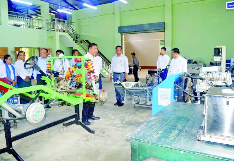 သမဝါယမနှင့်ကျေးလက်ဖွံ့ဖြိုးရေးဝန်ကြီးဌာန ဒုတိယဝန်ကြီး ဦးမြင့်စိုးသည် ယမန်နေ့ ညနေပိုင်းက ရှမ်းပြည်နယ် (တောင်ပိုင်း) တောင်ကြီးမြို့ အသေးစားစက်မှုလက်မှုလုပ်ငန်းဦးစီးဌာန၊ ရက်ကန်းနှင့် အသက်မွေးပညာသင်တန်းကျောင်းသို့ သွားရောက်၍ သင်တန်းကျောင်းအုပ်၊ ဆရာ ဆရာမများ၊ လက်ရက်ကန်းခြောက်လသင်တန်းတက်ရောက်နေသော သင်တန်းသူ သင်တန်းသားများနှင့် တွေ့ဆုံကာ လိုအပ်သည်များ မှာကြားပြီး သင်တန်းသူများ လက်တွေ့ဆောင်ရွက်နေသည့် လက်ရက်ကန်းဖြင့် ပအိုဝ်းခေါင်းပေါင်း၊ ဓနုလုံချည်နှင့် ဒေသခံတိုင်းရင်းသားဝတ်စုံများ ရက်လုပ်နေမှုကိုလည်းကောင်း၊ စက်ရက်ကန်းရက်လုပ်ခြင်း၊ ချားပုတ်ခြင်း၊ ချည်ချခြင်းနှင့် ဂျပ်ခုတ်လုပ်ငန်းလက်တွေ့သင်ယူနေမှုများကိုလည်းကောင်း လိုက်လံကြည့်ရှုအားပေးသည်။