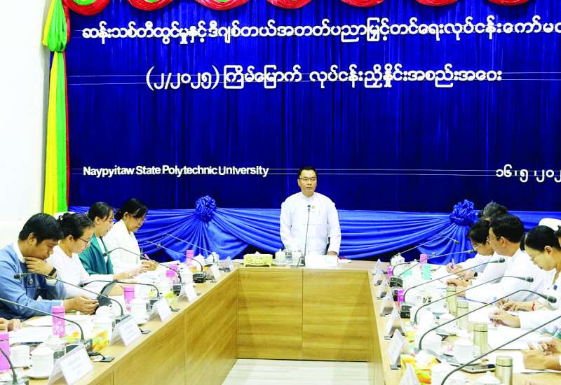ဒစ်ဂျစ်တယ်စီးပွားရေးဖွံ့ဖြိုးတိုးတက်မှုကော်မတီ၊ ဆန်းသစ်တီထွင်မှုနှင့် ဒစ်ဂျစ်တယ်အတတ်ပညာမြှင့်တင်ရေးလုပ်ငန်းကော်မတီ (၂/၂၀၂၅) လုပ်ငန်းညှိနှိုင်းအစည်းအဝေးကို ယမန်နေ့ နံနက်ပိုင်းက Naypyitaw State Polytechnic University ၌ Hybrid စနစ်ဖြင့် ကျင်းပပြုလုပ်သည်။