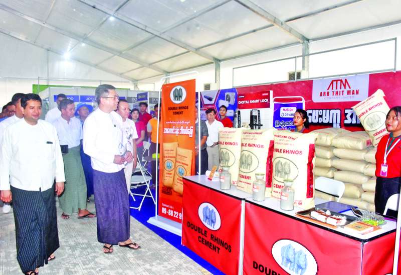 စီးပွားရေးနှင့်ကူးသန်းရောင်းဝယ်ရေးဝန်ကြီးဌာန ဒုတိယဝန်ကြီး ဦးမင်းမင်း၊ ပြည်ထောင်စုသမ္မတမြန်မာနိုင်ငံ ကုန်သည်များနှင့် စက်မှုလုပ်ငန်းရှင်များ အသင်းချုပ်နှင့် အသင်းအဖွဲ့များမှ တာဝန်ရှိသူများသည် ယနေ့ညနေပိုင်းတွင် မန္တလေးငလျင်ကြီး လှုပ်ခတ်ခဲ့ပြီးနောက် ပြန်လည်ထူထောင်ရေးလုပ်ငန်းစဉ်များ ဆောင်ရွက်ရာတွင် လိုအပ်သည့် သံ၊ သံမဏိ၊ ဘိလပ်မြေနှင့် ဆောက်လုပ်ရေးလုပ်ငန်းသုံးပစ္စည်းများကို အများပြည်သူများ ဈေးနှုန်းမှန်ကန်စွာနှင့် အရည်အသွေးပြည့်မီစွာ ဝယ်ယူနိုင်ရေးရည်ရွယ်၍ နေပြည်တော် ဥပ္ပါတသန္တိစေတီတော် တပေါင်းကွင်း၌ မေ ၁၂ ရက်မှ ၁၈ ရက်အထိကျင်းပမည့် သံ၊ သံမဏိ၊ ဘိလပ်မြေနှင့် ဆောက်လုပ်ရေးလုပ်ငန်းသုံး ပစ္စည်းများရောင်းချပေးမည့် ပြခန်းများကို ကြည့်ရှုစစ်ဆေးသည်။
