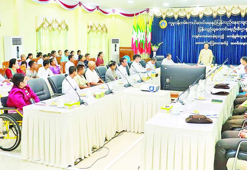 မန္တလေးငလျင်ဘေးခံစားခဲ့ရသည့် မသန်စွမ်းသူများအား ထောက်ပံ့ကြေးပေးအပ်ပွဲအခမ်းအနားကို ယနေ့မွန်းတည့် ၁၂ နာရီတွင် ပြန်လည်ထူထောင်ရေးဦးစီးဌာန အစည်းအဝေးခန်းမ၌ ကျင်းပရာ လူမှုဝန်ထမ်း၊ ကယ်ဆယ်ရေးနှင့်ပြန်လည်နေရာချထားရေးဝန်ကြီးဌာန ပြည်ထောင်စုဝန်ကြီး ဒေါက်တာစိုးဝင်း၊ ဒုတိယဝန်ကြီး ဦးစိုးကြည်၊ နေပြည်တော်ကောင်စီ ကောင်စီဝင် ဦးမြင့်စိုး၊ အမြဲတမ်းအတွင်းဝန်၊ ညွှန်ကြားရေးမှူးချုပ်များ၊ အထွေထွေအုပ်ချုပ်ရေးဦးစီးဌာနမှ တာဝန်ရှိသူများ၊ မြန်မာနိုင်ငံ မသန်စွမ်းသူများအသင်းချုပ် ဒုတိယဥက္ကဋ္ဌ (၁)၊ နေပြည်တော်မသန်စွမ်းသူများ အသင်းဥက္ကဋ္ဌနှင့် မသန်စွမ်းသူကိုယ်စားလှယ်များ တက်ရောက်ခဲ့ကြသည်။